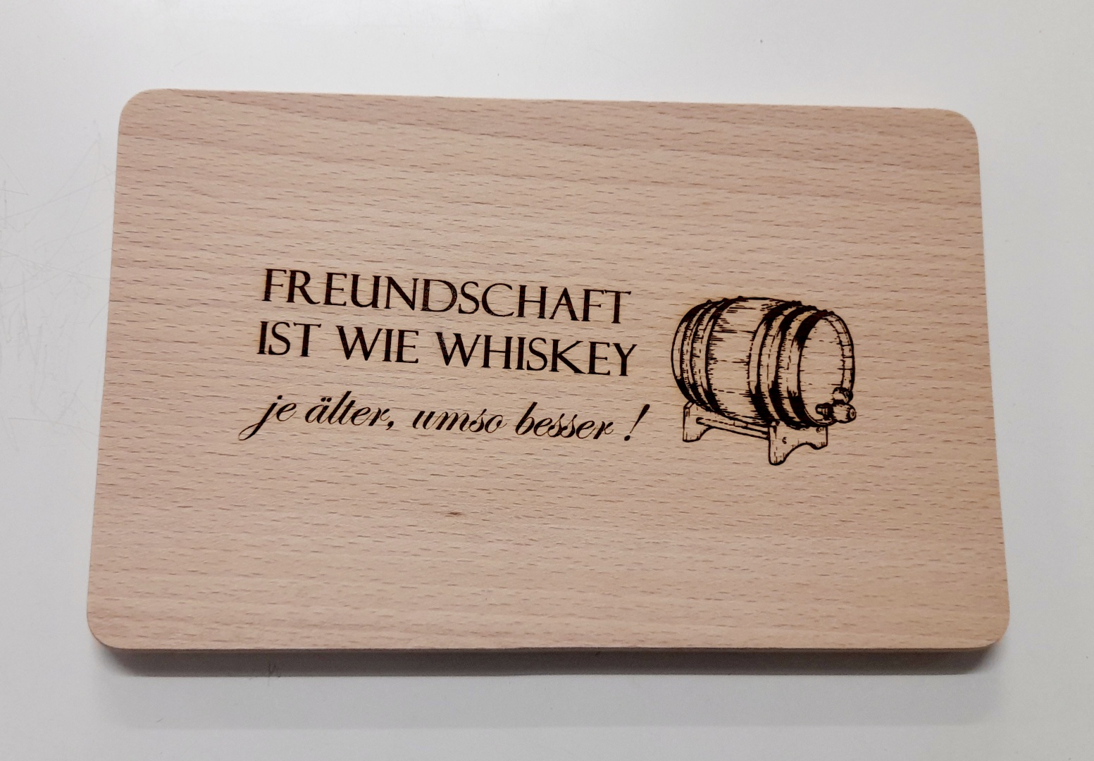 Ein praktisches und persönliches Geschenk zum Geburtstag oder als Mitbringsel. Die Gravur/Einbrennung erfolgt in der Mitte des Brettchens wie auf dem Bild zu sehen.