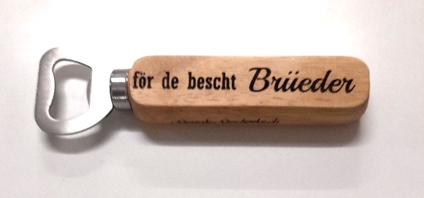 Die Gravur/Einbrennung erfolgt auf einer Seite des Flaschenöffners (die zweite Seite mit Namen zu beschriften ist möglich für +5.-Fr. Aufpreis)