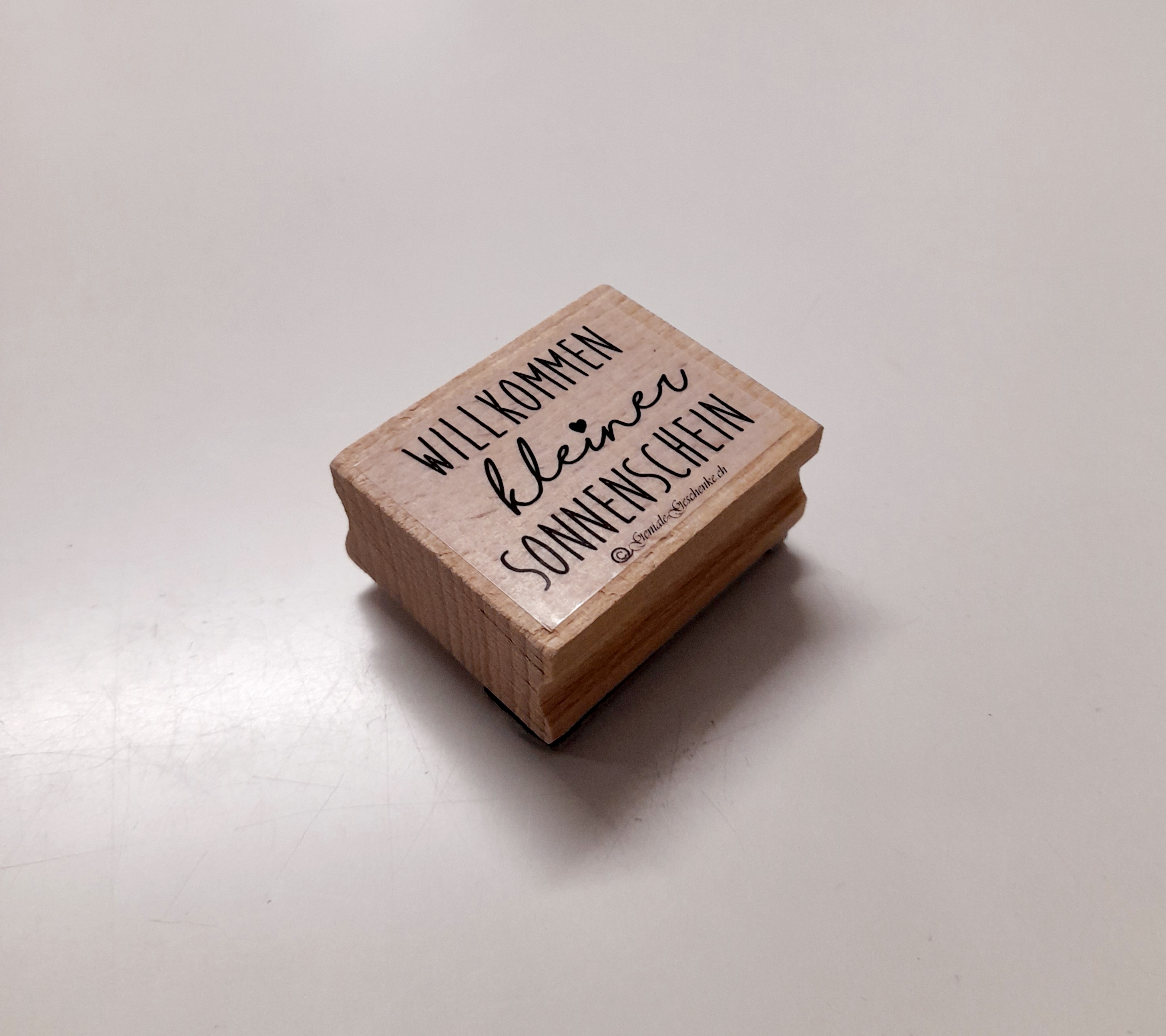 Holzstempel zur Geburt - willkommen kleiner Sonnenschein