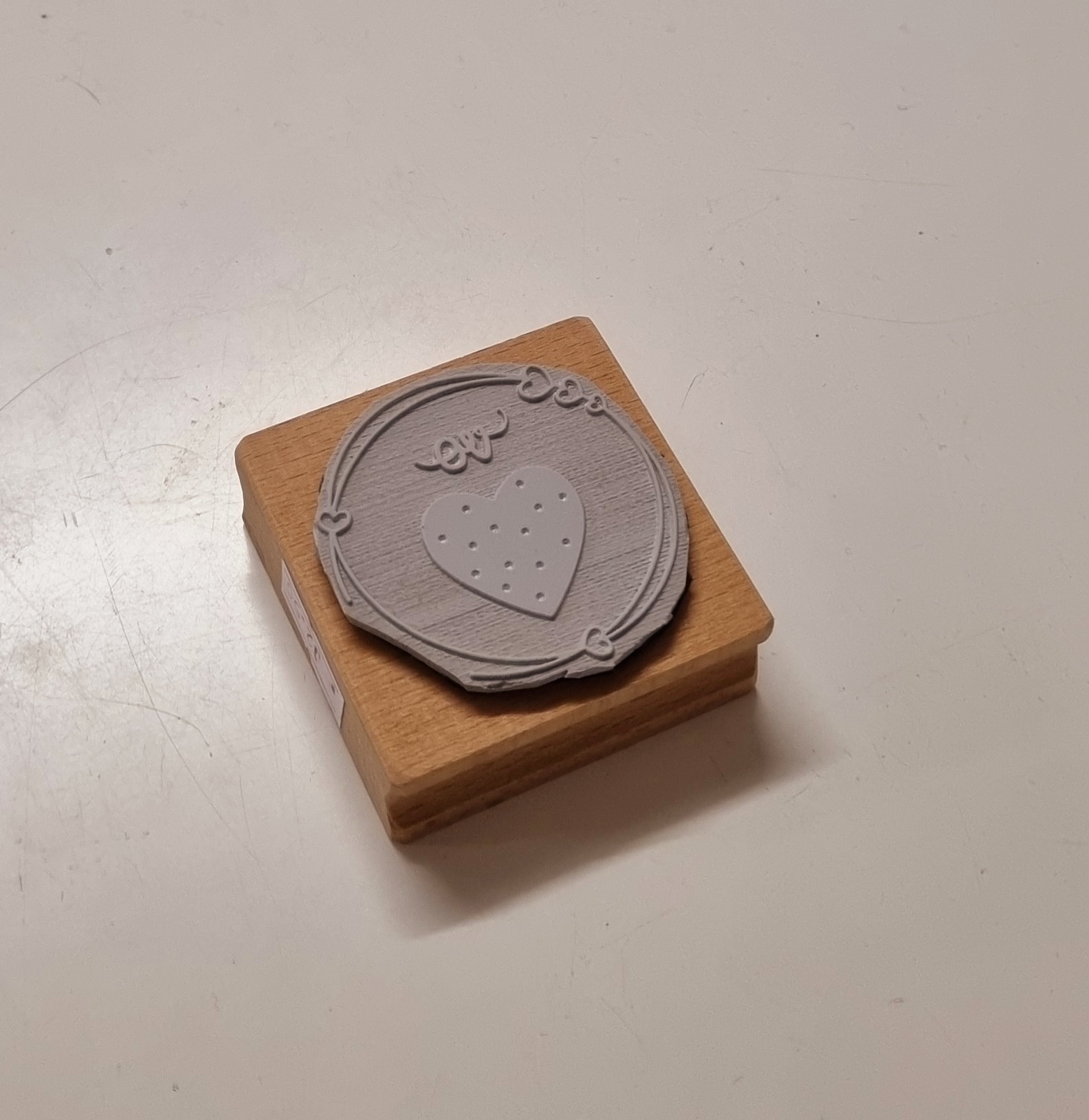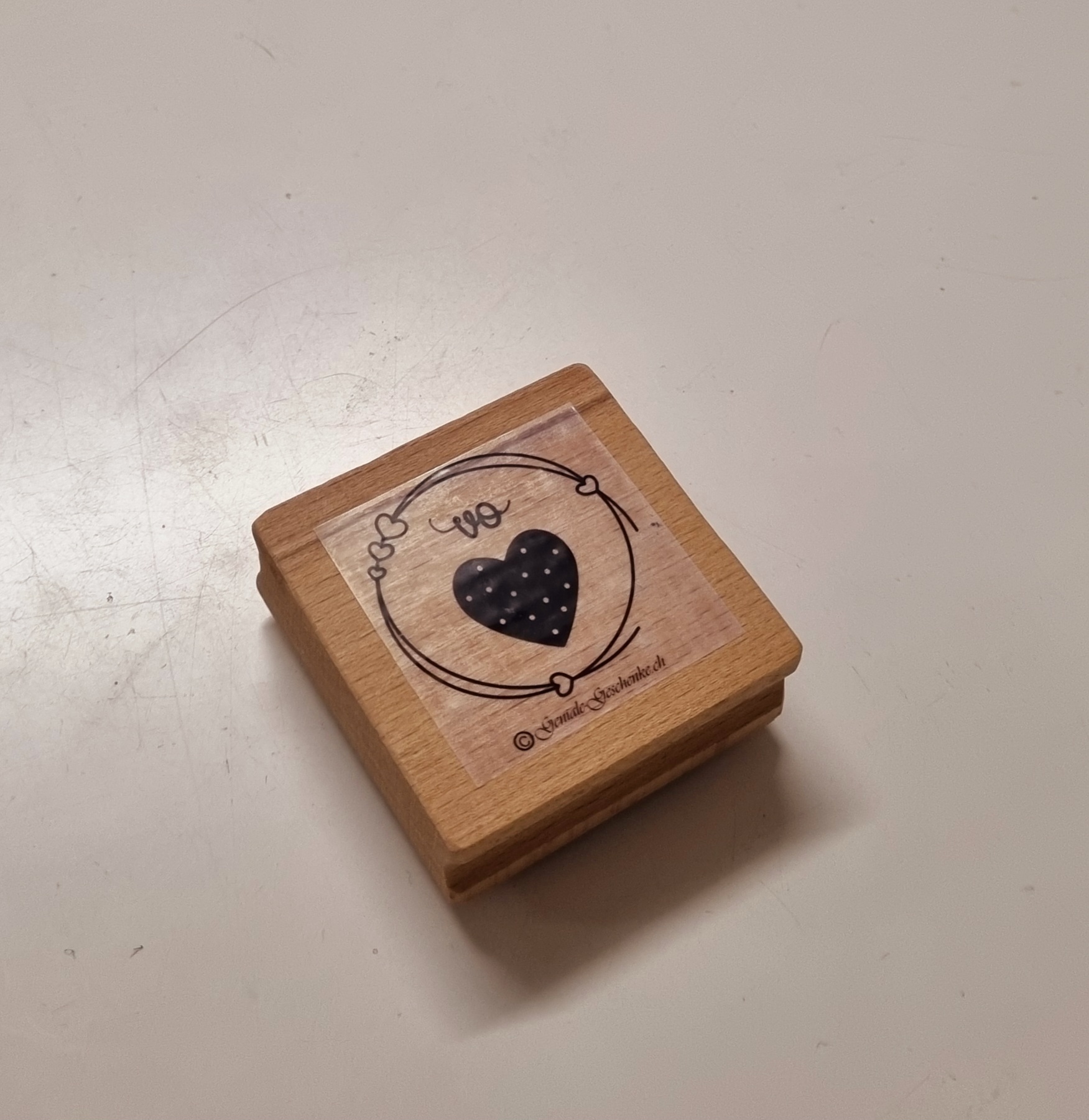 Holzstempel vo Härze mit Punktherz mit Rahmen