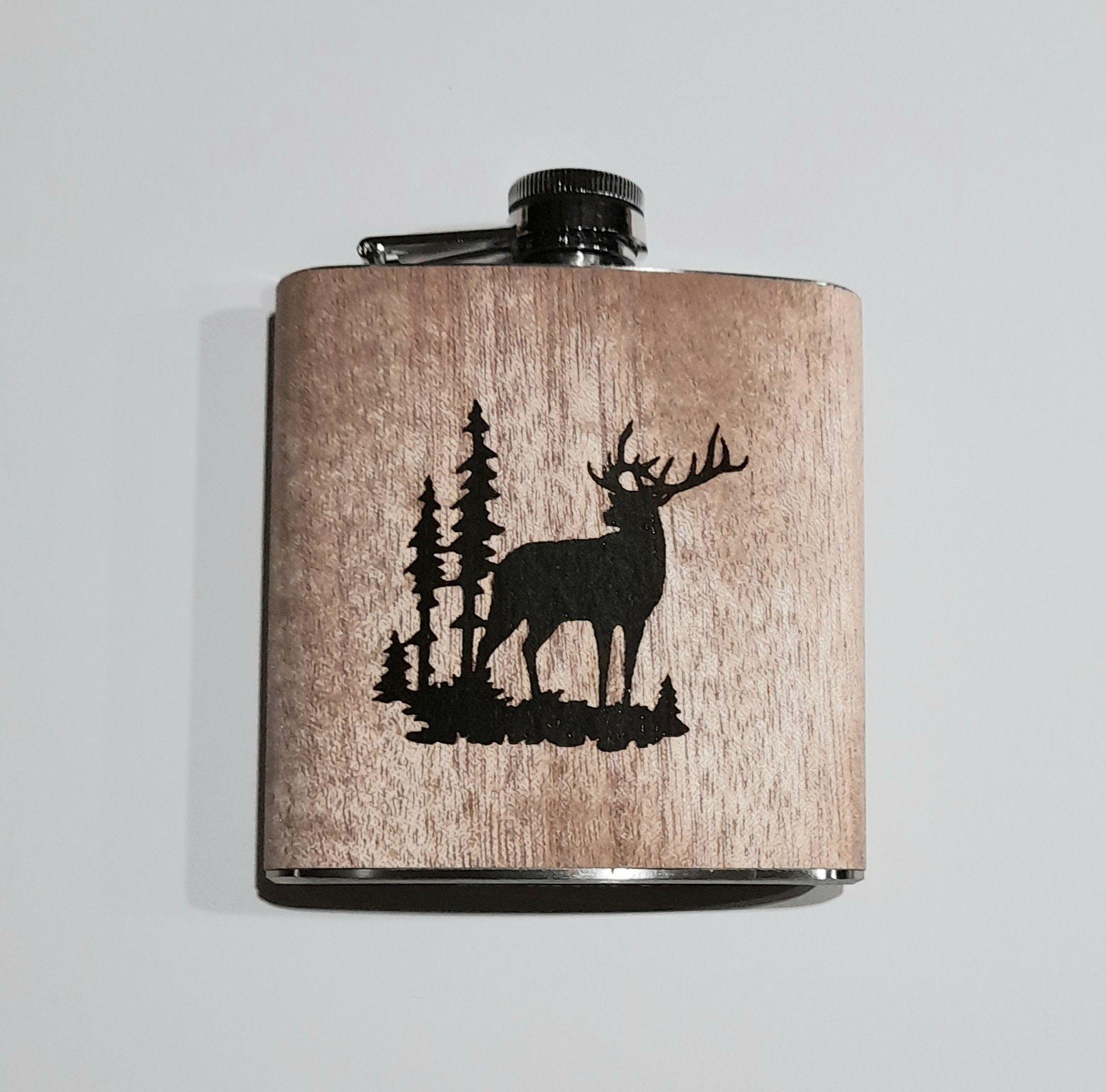 cooler Flachmann mit Hirsch im Wald Gravur