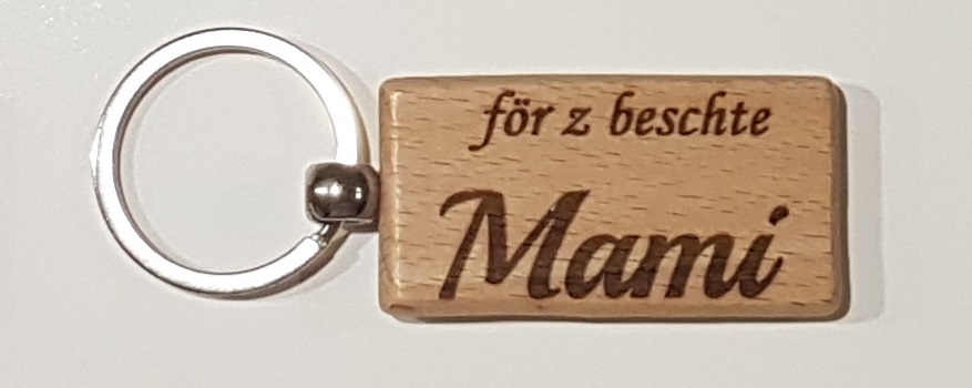 Auf der Rückseite des Schlüsselanhängers kann gegen einen Aufpreis von 5.-Fr. eine Widmung 'von xxxx' oder ein Name eingraviert werden.