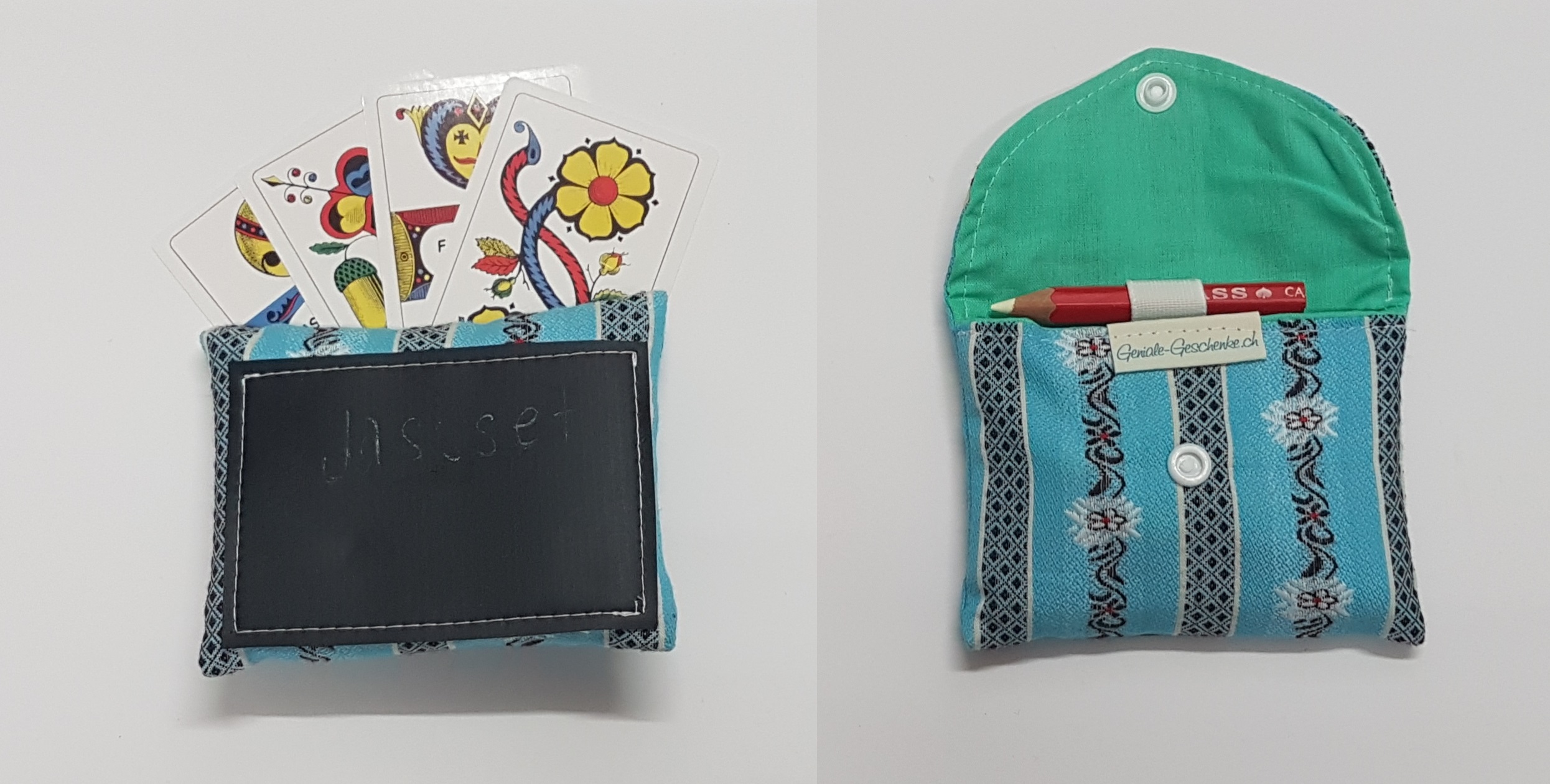 - Jass-Set Täschli mit aufgenähtem Tafelstoff