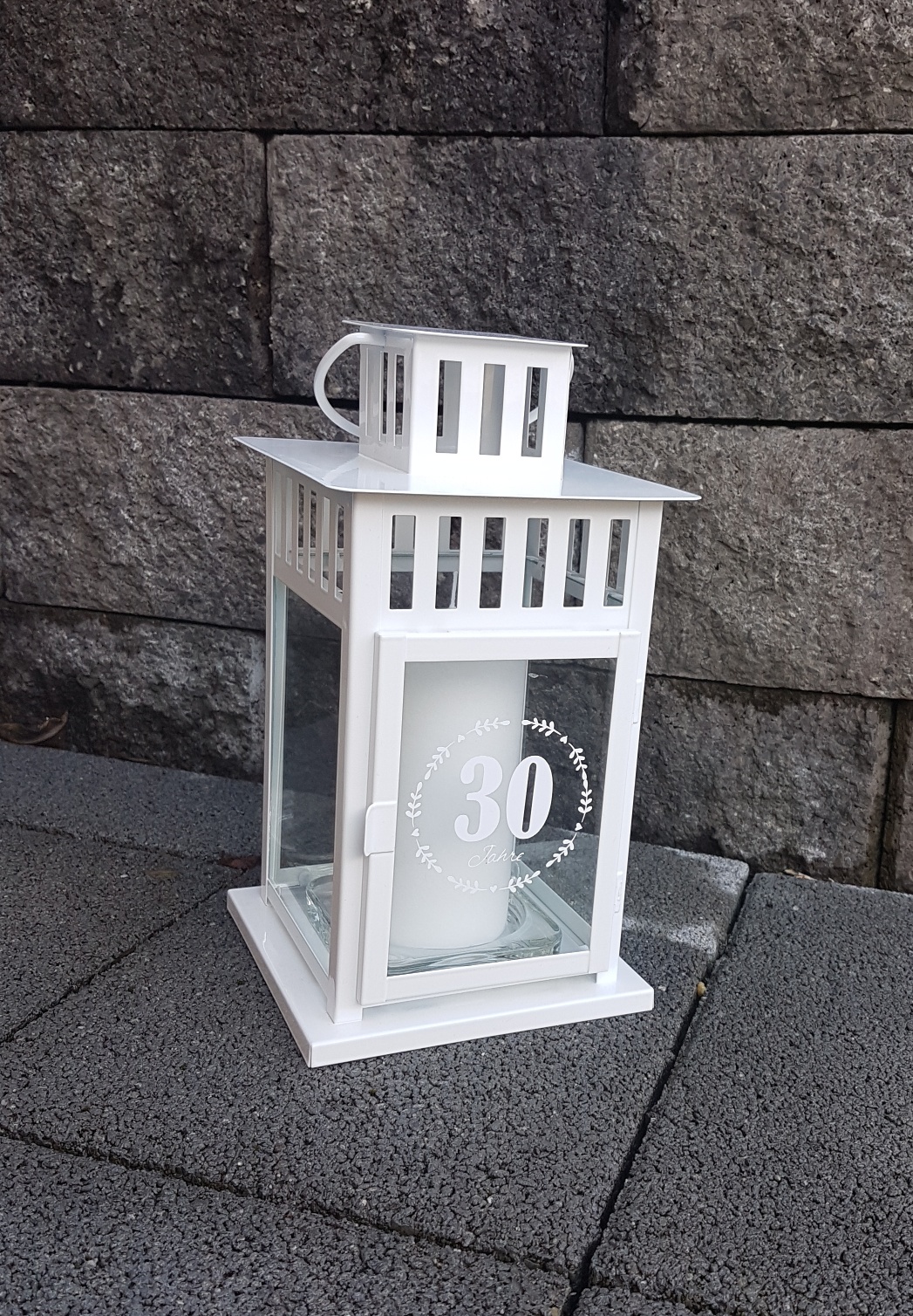 Lieferumfang: Laterne beschriftet an Vorderseite '30 Jahre' gemäss Bild