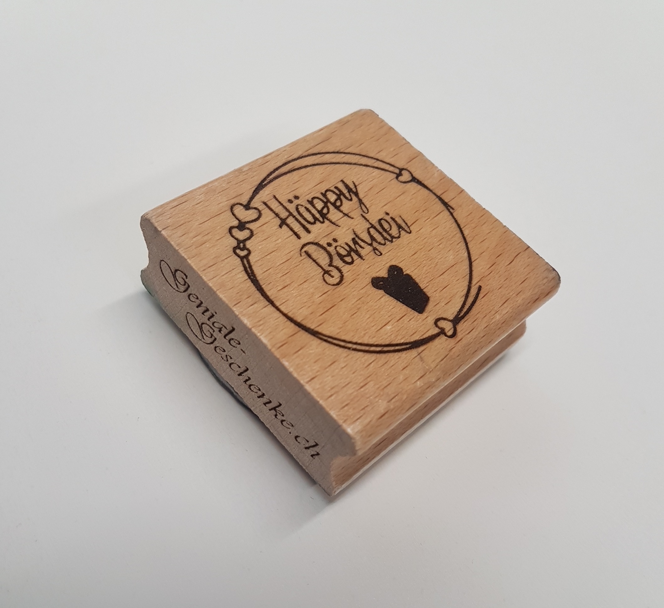 Holzstempel Häppi Börsdei mit Rahmen (klein)